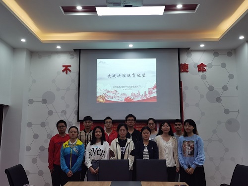 为深入学习贯彻习近平总书记在决战决胜脱贫攻坚座谈会上的重要讲话精神和在湖南考察时的重要讲话精神,9月29日16点整,本科生应化第一党支部在化工楼132召开“决战决胜脱贫攻坚”主题党日活动。会议由支部书记于悦凡同志主持,支部党员积极参加。