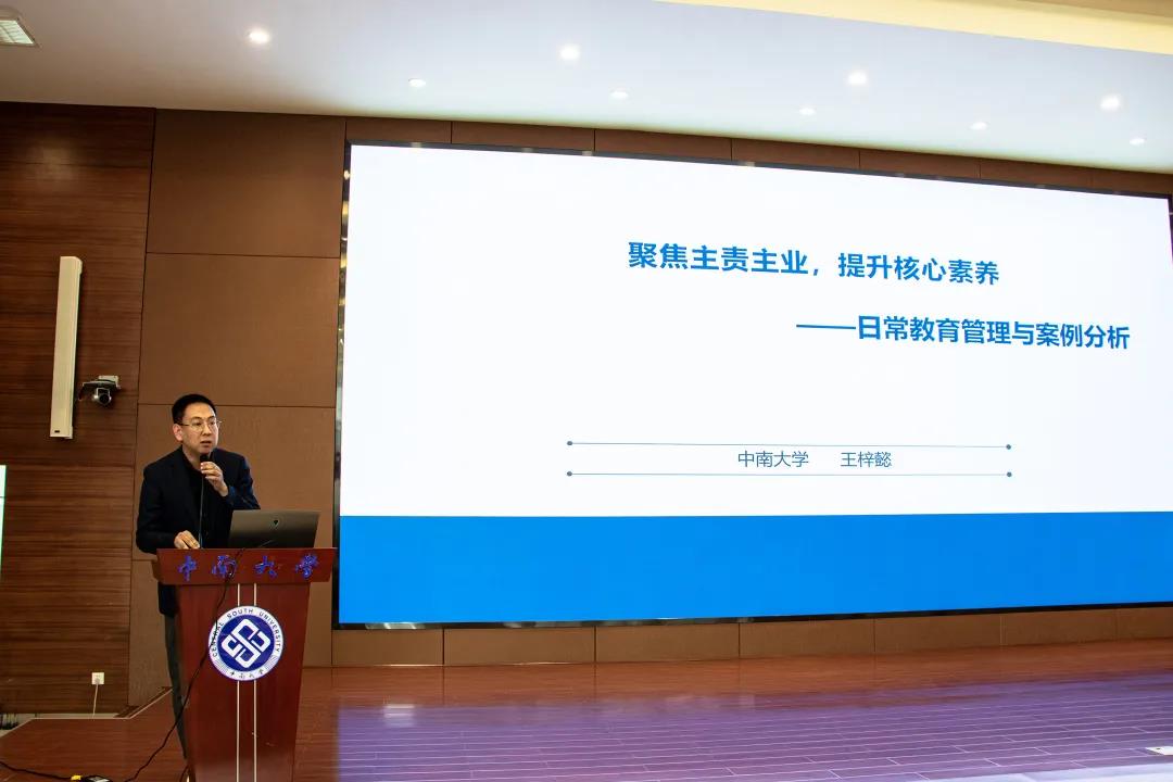 王梓懿老师进行了“聚焦责任主业 提升核心素养”的主题发言,分别从聚焦主责主业构建分析框架、提升核心素养讲好育人故事、深入研讨问答彰显职业风采等方面分享了日常教育管理与辅导员素质能力大赛中案例研讨环节的关系和大赛经验。他认为,大赛中案例研讨都来源于大家对工作职能的熟知、对工作逻辑的运用、对工作经验的总结、对工作方法的掌握、对工作效果的反思,在案例研讨过程中充分展示个人的政治素养、法治素养、品格素养和能力素养,彰显辅导员的职业风采。