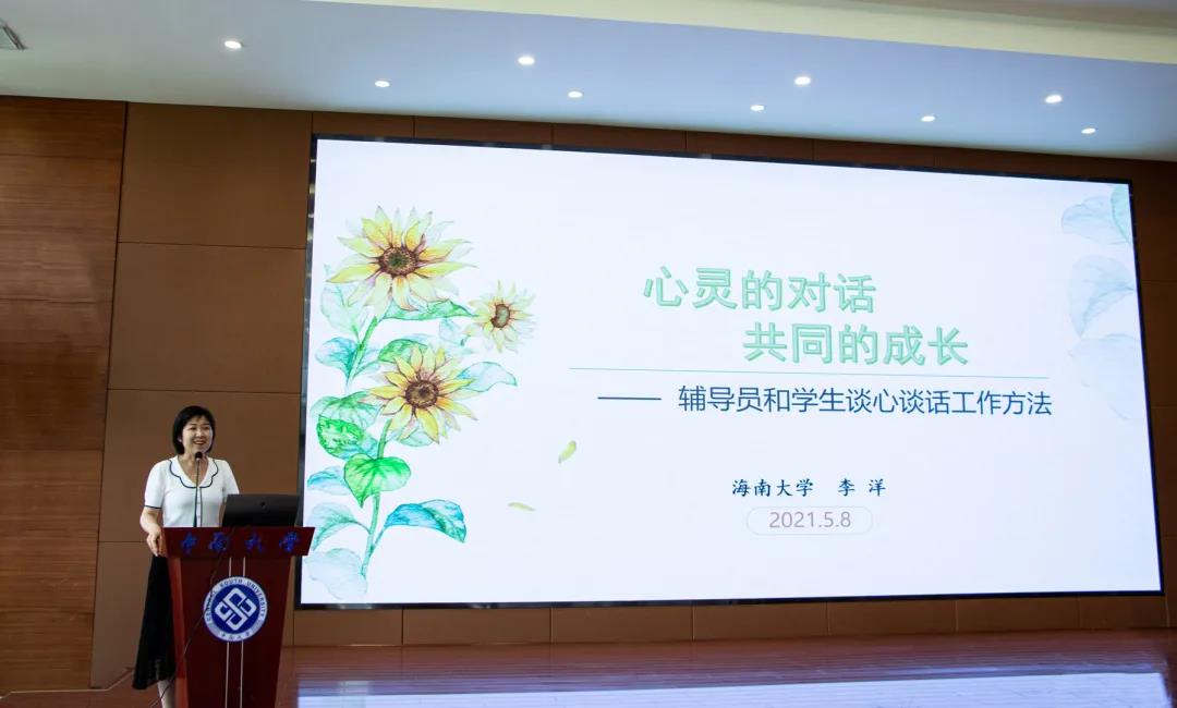 李洋副书记以“心灵的对话 共同的成长”为题,从谈心谈话能力的重要性、如何做谈心谈话、如何提升谈心谈话能力三个方面,通过生动鲜活的工作案例,为大家分享了辅导员和学生谈心谈话的工作方法。分享过程中,李洋副书记的发言条理清晰,层层递进,为各位辅导员老师传送了十分宝贵的经验。