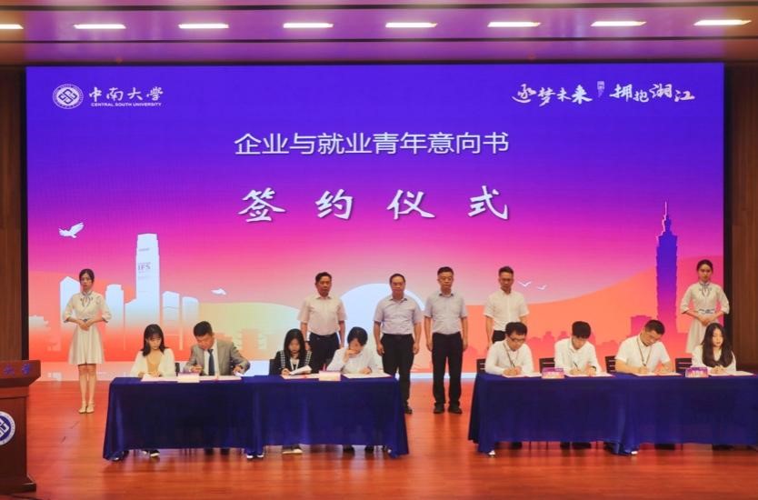 最后是分享会的招聘环节。在现场领导嘉宾的见证下,慈利县银澧国际学校与暨南大学张玉玲等四名台生签订就业意向书。在湘优秀台湾青年代表分享了自己在湖南学习工作与生活的心得体会。