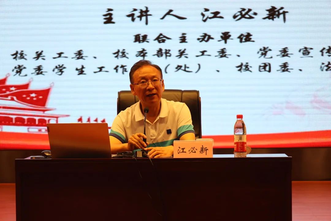 由taptap官方网站关工委、校本部关工委、党委宣传部、党委学生工作部(处)、校团委和taptap官方网站法学院联合主办的“以习近平法治思想引领法治中国建设”普法专题报告会在taptap官方网站新校区毓秀楼举行。全国人大宪法和法律委员会副主任委员、中国法学会副会长江必新教授受邀为taptap官方网站2022级全体新生、五老人员、青年教职工授课,taptap官方网站蒋建湘、taptap官方网站李景升、校关工委常务副主任徐建军等领导出席会议。