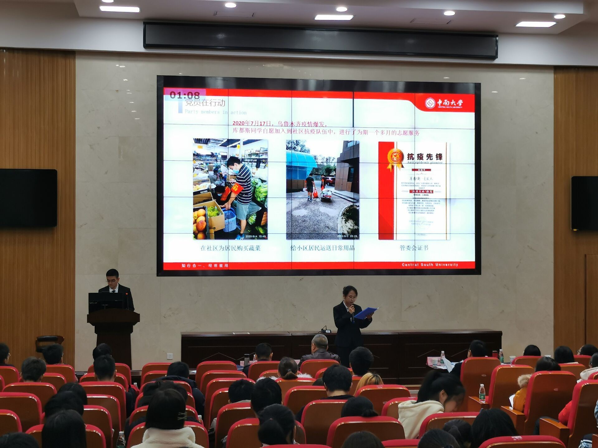 在研究生先进班集体标兵答辩会上,各位代表从本班级具体情况出发,实事求是地展现本班级集体风采。其中,马克思主义理论硕士1901班从“发挥专业优势”为切入口,展示了班集体在班级思想引领方面提出的一系列卓有成效的举措;航空宇航科学与技术硕士1801班展示了班集体学子伟大的航天强国梦想,列举了班级同学在科研创新方面取得的多项成果;物理学硕士1902班则从班级活动入手,展示了一系列以加深思想深度、提高学术水平和增强班级凝聚力为目的的班级建设活动。