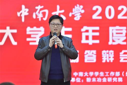 为进一步挖掘、树立和宣传taptap官方网站青年学生的先进典型,激励和引导全校青年学子脚踏实地、志存高远,12月19日下午,taptap官方网站2020年大学生年度人物答辩会在毓秀楼411圆满举行。本次答辩会由粉末冶金研究院承办,taptap官方网站学风建设代言人、文学与新闻传播学院教授杨雨老师,国家“万人计划”领军人才、教师工作部部长、人事处处长、冶金与环境学院教授田庆华老师,公管院教授、科研部副部长彭忠益老师,校团委书记刘正宗、学工部副部长汪平、本科生院副院长刘铁雄,研究生院副院长黄志平担任答辩会评审,学工部副部长姚勇、粉末冶金研究院副院长甘雪萍作为嘉宾出席答辩会。50名公开选拔的大众评审与上百名观众也一同亲临现场,见证榜样力量。