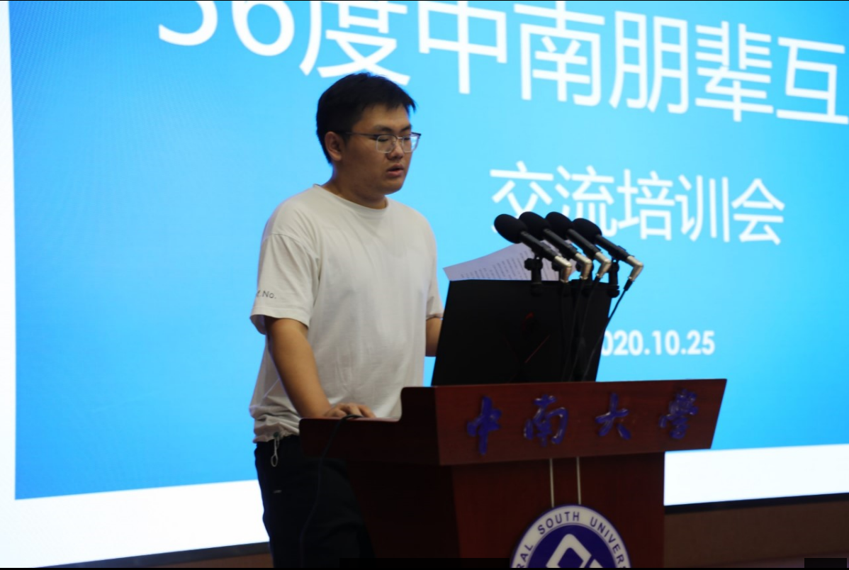 10月25日晚,2019-2020学年56度中南朋辈互助荟优秀义工表彰会暨新义工培训会在新校区毓秀楼召开。少数民族学生事务办公室吾勒盼老师、热合麦提江老师、古丽妮尕尔老师,朋辈互助荟全体新老义工到场参加。会议由朋辈互助荟综合组干事、来自英语1902班的马雨晴同学主持。
