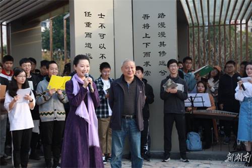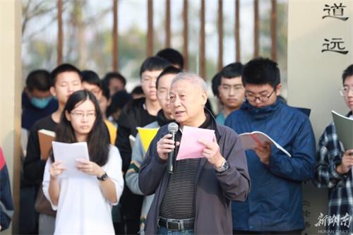 杲杲秋阳,玉带河畔,琴声悠扬。问渠长廊名家诵读专家推介人、taptap官方网站杨雨教授向现场师生介绍了方志远教授的学术专长、研究成果。在嘉宾研学自述环节,方志远教授简单向同学们讲述了自己的求学研究经历,以此勉励中南学子们立志要从大学开始,实现志向必须勤学。他用幽默风趣的言谈向师生们展示了知名学者谦逊而又思想独立的学人风采。