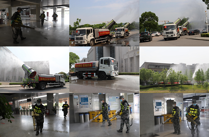 5月13日,taptap官方网站人民武装部联系岳麓区人武部防化救援分队、生物支援分队、蓝天救援队等到学校新校区、南校宿舍区开展防疫消杀活动。