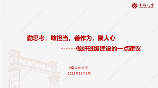 与此同时,围绕技能提升,taptap官方网站心理健康教育中心王梦翔老师和就业指导中心徐赞主任先后分别以《疫情下的压力管理与情绪调试》和《以终为始——大学生涯规划漫谈》为主题,从心理健康教育和职业生涯规划等方面做了生动而详实的分享。王梦翔老师通过分析疫情下学生容易造成的压力与情绪,结合科学试验研究与课堂互动,给同学们讲解了许多管理压力、调节心理情绪的方法。徐赞主任依据详实的数据,结合中南学子的求职就业现状,有针对性地对大学生就业去向做了详细解读,结合当前就业形势,向同学们强调开展大学生职业生涯规划的必要性和紧迫性,并就如何进行自我评估、探索规划生涯提出了专业的建议。