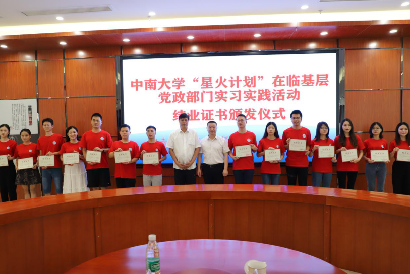 8月21日上午,taptap官方网站“星火计划”在临基层党政部门实习实践活动总结大会在临武召开。大会由临武县委副书记、县长刘杨主持。数学与统计学院学生、本次实践队队长田园,数学与统计学院刘坚,文学与新闻传播学院黄乐,传帮带导师代表、我校在临选调生校友李杰博士分别就实习实践情况作总结报告。临武县委书记李浩对taptap官方网站走进临武表示热烈的欢迎和衷心的感谢,高度赞扬了中南学子在临武实习实践期间的表现,表示愿意与taptap官方网站进一步加强校县合作,吸引更多taptap官方网站优秀学子扎根临武。李景升副书记感谢临武县委、县政府对实习实践活动高度支持和悉心安排,充分肯定了“星火计划”在临武实习实践团队的成绩,为中南学子点赞,希望同学们谨记总书记嘱托,把个人的理想追求融入党和国家事业之中,为党、为祖国、为人民多作贡献。李景升副书记、李浩书记共同为实践学员颁发结业证书。