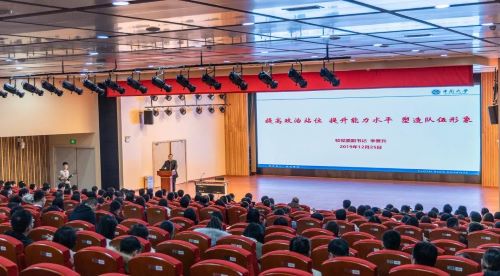 他以“提高政治站位 提升能力水平 塑造队伍形象”为题,紧扣习近平新时代中国特色社会主义思想内涵,围绕国际国内形势,立足学生工作现状,结合学生实际特点,为全体学生工作干部上了一堂精彩生动的思想政治和素质能力提升课。