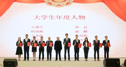 李景升、朱学红、陈立章分别为10位大学生年度人物提名奖、优秀学生个人代表、先进班集体代表颁发获奖证书。