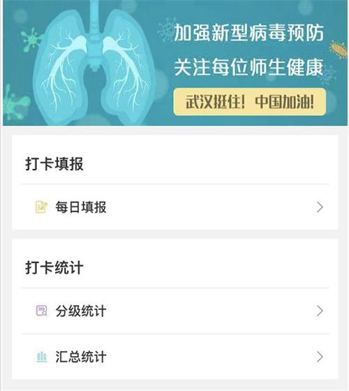 一是“点对点”联系,不留一处死角。成立疫情防控工作组,召开学工系统疫情防控线上会议,组织辅导员、班导师、研究生导师全面摸排全校学生疫情状况,建立学生健康档案,推行学生“健康打卡”系统,建立“每日一报”制度,及时全面动态掌握学生身体健康情况,同时严格要求学生不得提前返校。