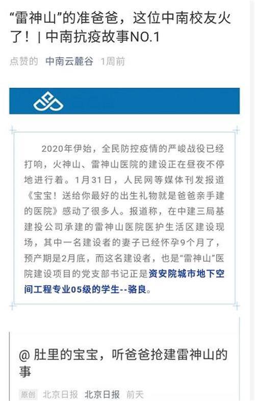 二是主动宣传战疫典型,以榜样鼓劲。开设“中南抗疫故事”、“青春战疫”等专栏,积极宣传报道学校师生校友和附属医院防疫战疫典型事迹,以生动的故事和真切的人物感染师生,增强全体师生打赢疫情防控战的决心和信心。