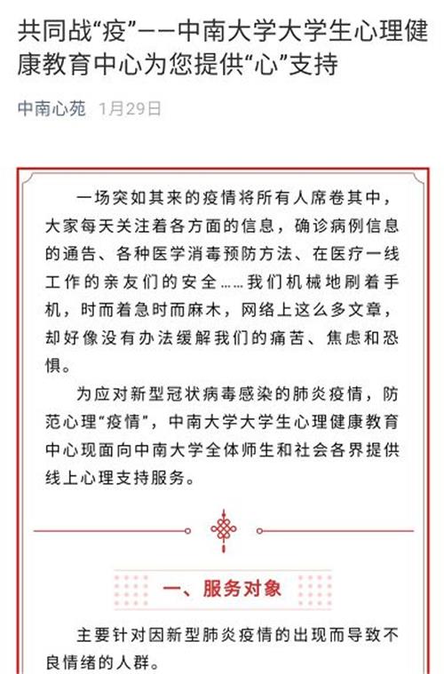 一是深入开展心理健康援助,助力社会稳定。学校心理健康教育中心开通心理援助热线“心晴热线”以及网络心理援助平台“心理聊吧”,由中心专职教师值守,向广大师生和社会公众提供心理支持、心理疏导等服务,预防与减轻疫情所致的心理困顿,防范心理压力引发的极端事件。