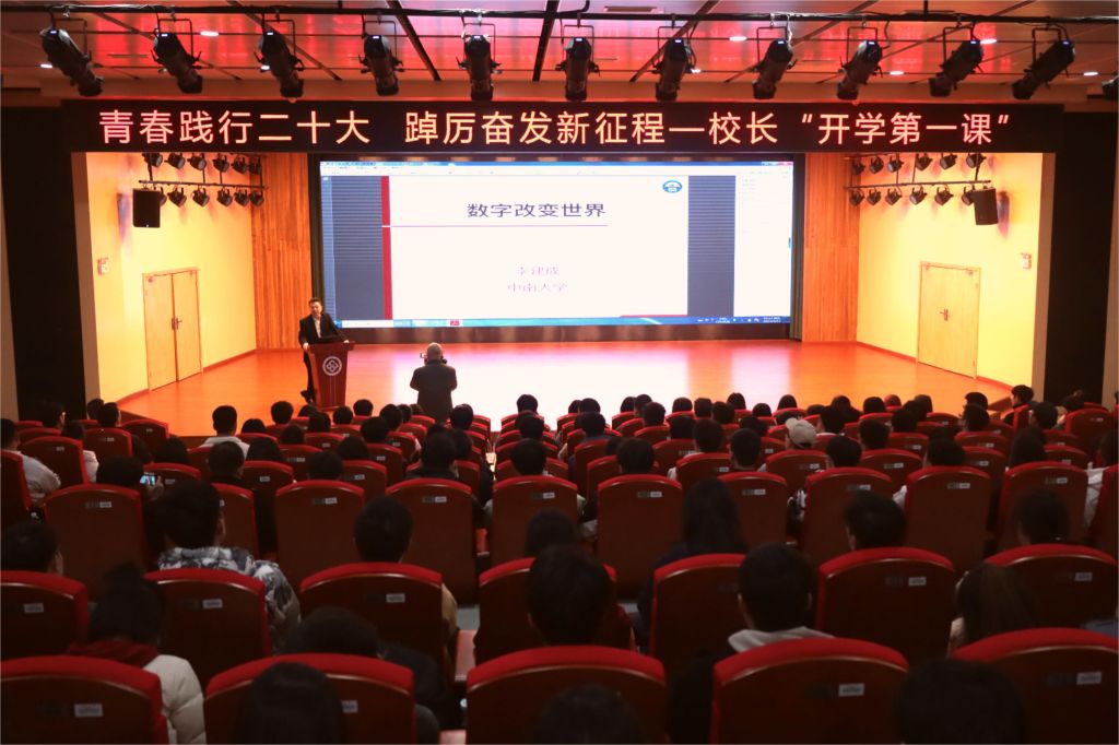 3月17日上午,330余名本硕博学生代表相聚在毓秀楼和声堂,共同聆听校长李建成以“数字改变世界”为题作的“开学第一课”。李建成勉励同学们主动触摸时代脉搏,积极做出方向定位,练就过硬本领和身体素质,以小我之滴融入时代大潮,在新征程的生动实践中镌刻下中南人的时代印记。