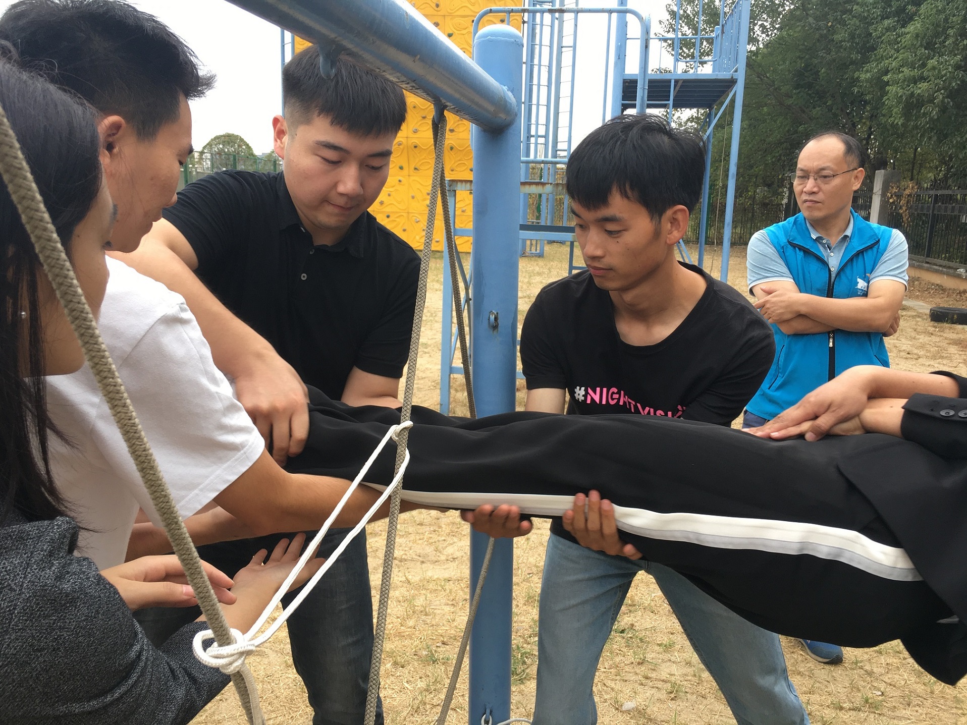 我们进行了“齐心协力”、“能量传输”、“不倒森林”等三项游戏,在游戏中我们领悟了团队合作精神,培养了团队之间的向心力和凝聚力,联络了队员之间的感情。在信任背摔中,“你相信自己吗?”“相信!”“你相信你的队友吗?”“相信!”“下面的伙伴准备好了吗?”“准备好了,我们一定支持你!”虽然只是简短的三个问答,但是提升了成员的信心,给足了勇气。无论在向后倒之前是害怕犹豫,还是勇敢无惧,但在倒的那一刻,心中充满的不仅是勇气,更多的是对团队的信任。 而“电网”活动更是让我们感触颇深。在活动中,我们认识到每一个团队都需要有人去无私奉献、默默地付出。不仅如此,在解救他人的同时,我们也一定要保护好自己,不去做无谓的牺牲,总结经验,学习新知,以面对各种突发事件,做到有备无患。