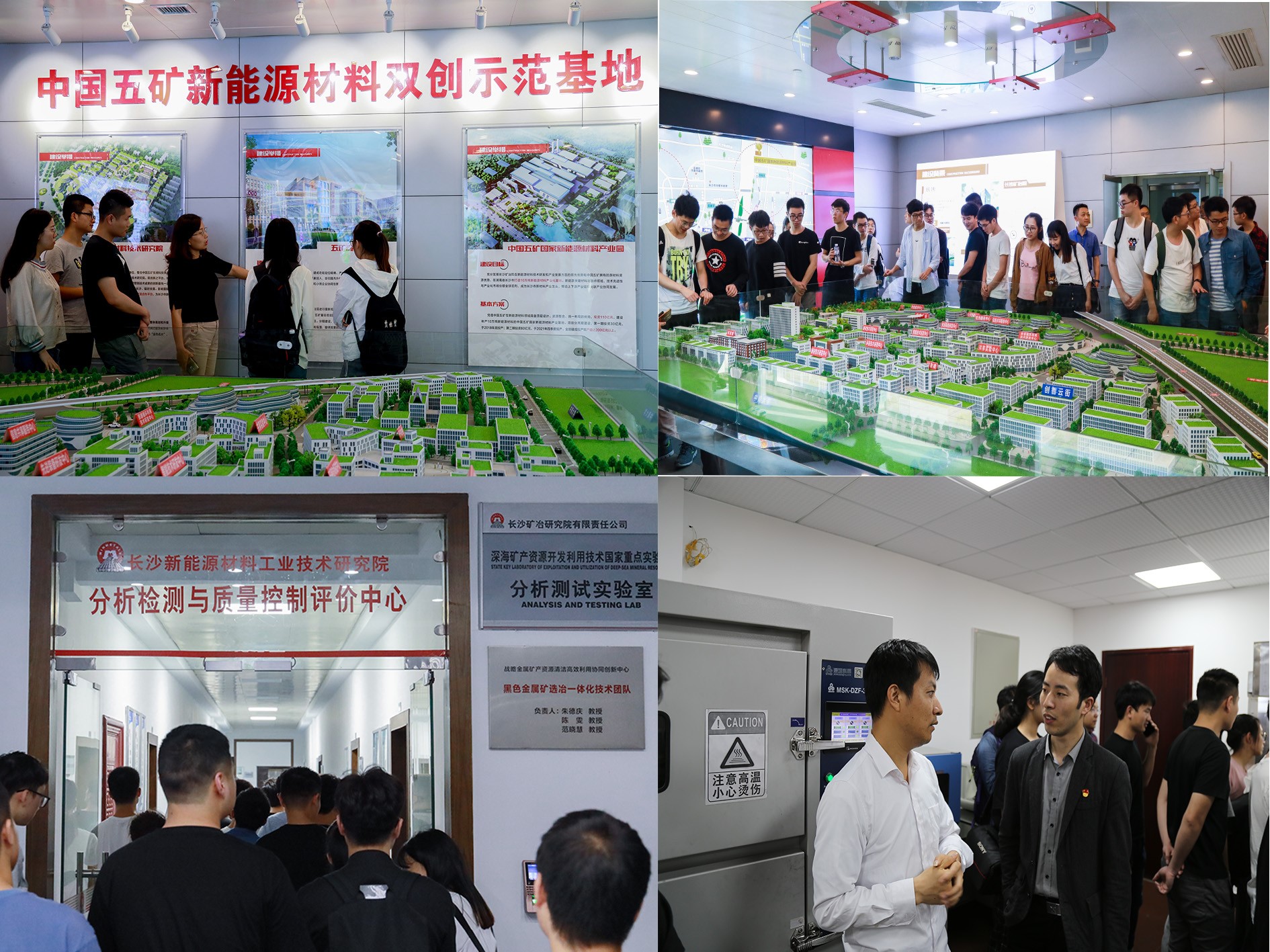 专题报告结束之后一行人先后参观了长沙矿冶研究院双创示范基地展览室、材料所以及分析所。讲解员向在场人员介绍了长沙矿业研究院建设规划、产业布局以及先进的研究场所和仪器设备。同学们在现场与工程师和研究人员进行讨论,互动频频,反响十分热烈。