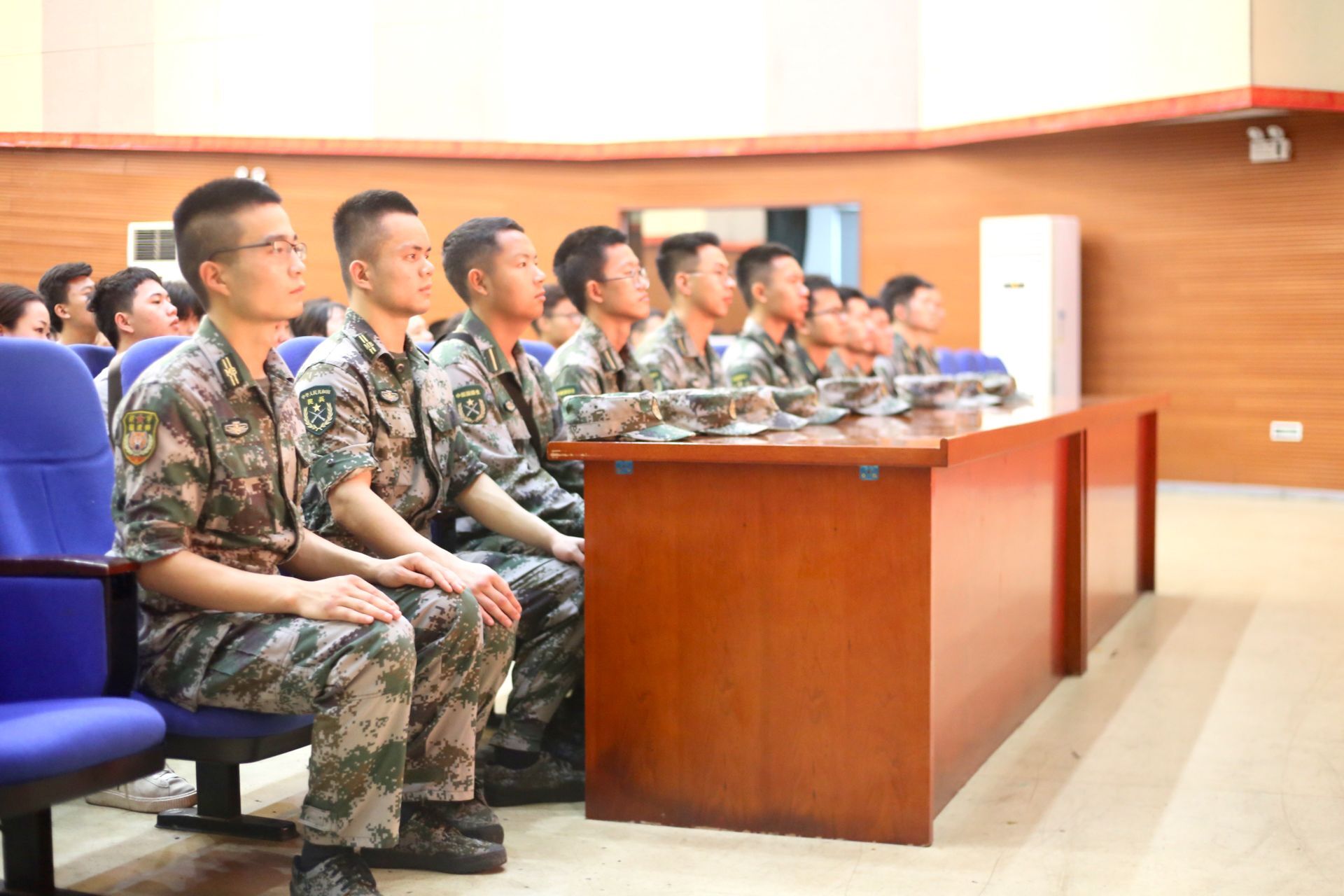 上午十点整,拉练队伍与预征对象及国防生队伍在军营前顺利会合,并一同进入礼堂。活动伊始,武装部徐旭敏副部长对拉练队伍行进途中良好表现给予了充分肯定,并对所有活动参与人员提出了相关要求。