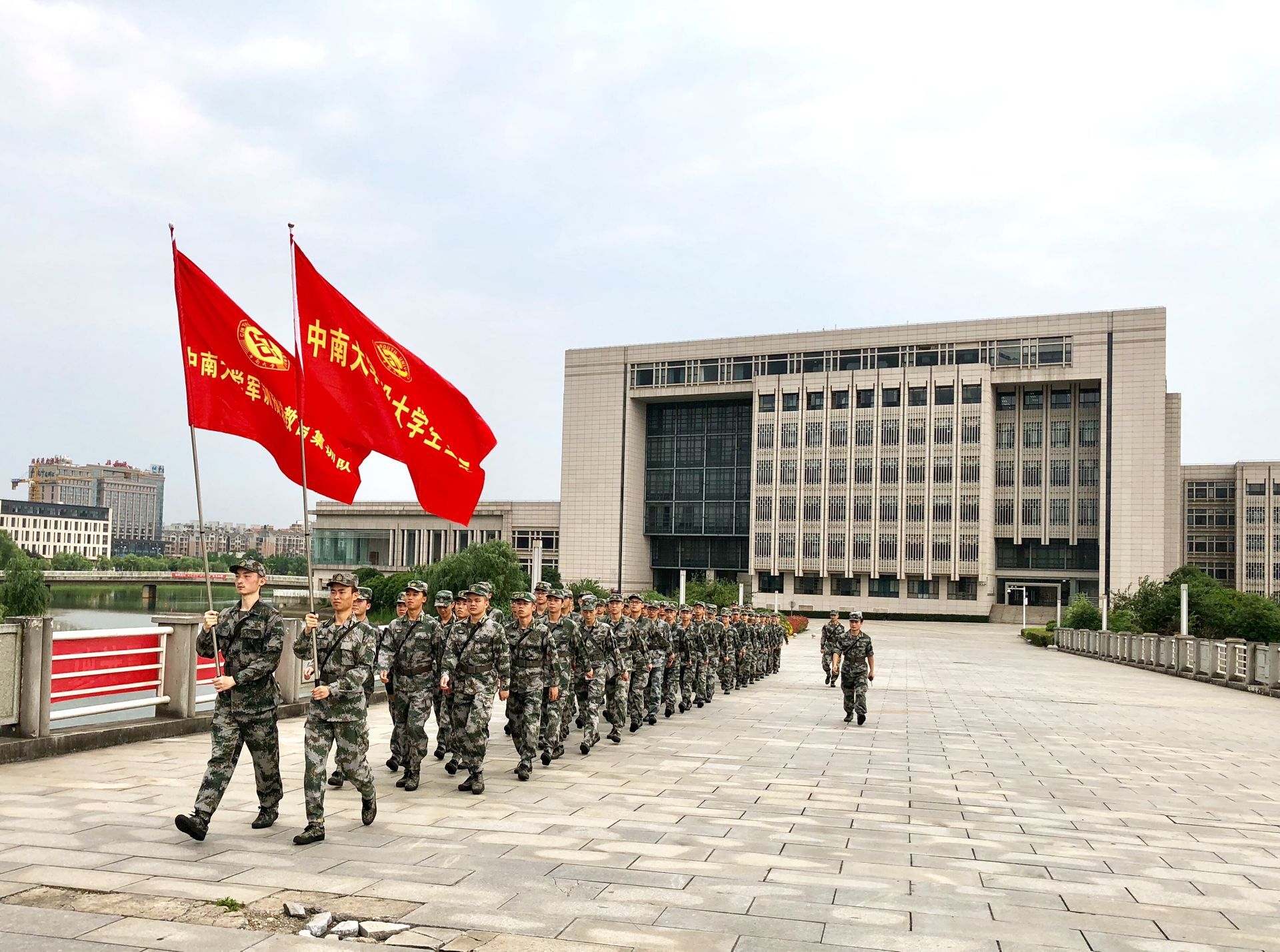 上午6点40分,拉练队伍从新校区毓秀楼准时出发,“以步代车”开始了长达15公里的徒步拉练。为应对拉练途中复杂的路况以及各种突发情况,武装部成立了应急小组,有效地保障了队伍行进途中的安全。退役大学生模拟连、教官集训队两面红色的旗帜,飘扬在队伍的最前方,身着迷彩的中南学子不畏闷热不惧劳苦,时刻以军人标准严格要求自己。