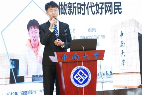 中南好网民选树活动开展以来,得到学生们的广泛关注和参与。经个人申请、学院推荐,学校初审,线上投票和现场答辩等环节,最终马克思主义学院龙玥儿,公管院陈康慧,文新院刘儒雅、薛子怡,数统院樊逸璇,湘雅医学院杨皓钧、段佳玥,化工院廖滟菁,商学院王勖,湘雅护理学院董湘凌入选中南十大好网民,王超副书记、宋晓东副书记为好网民颁奖并合影留念。