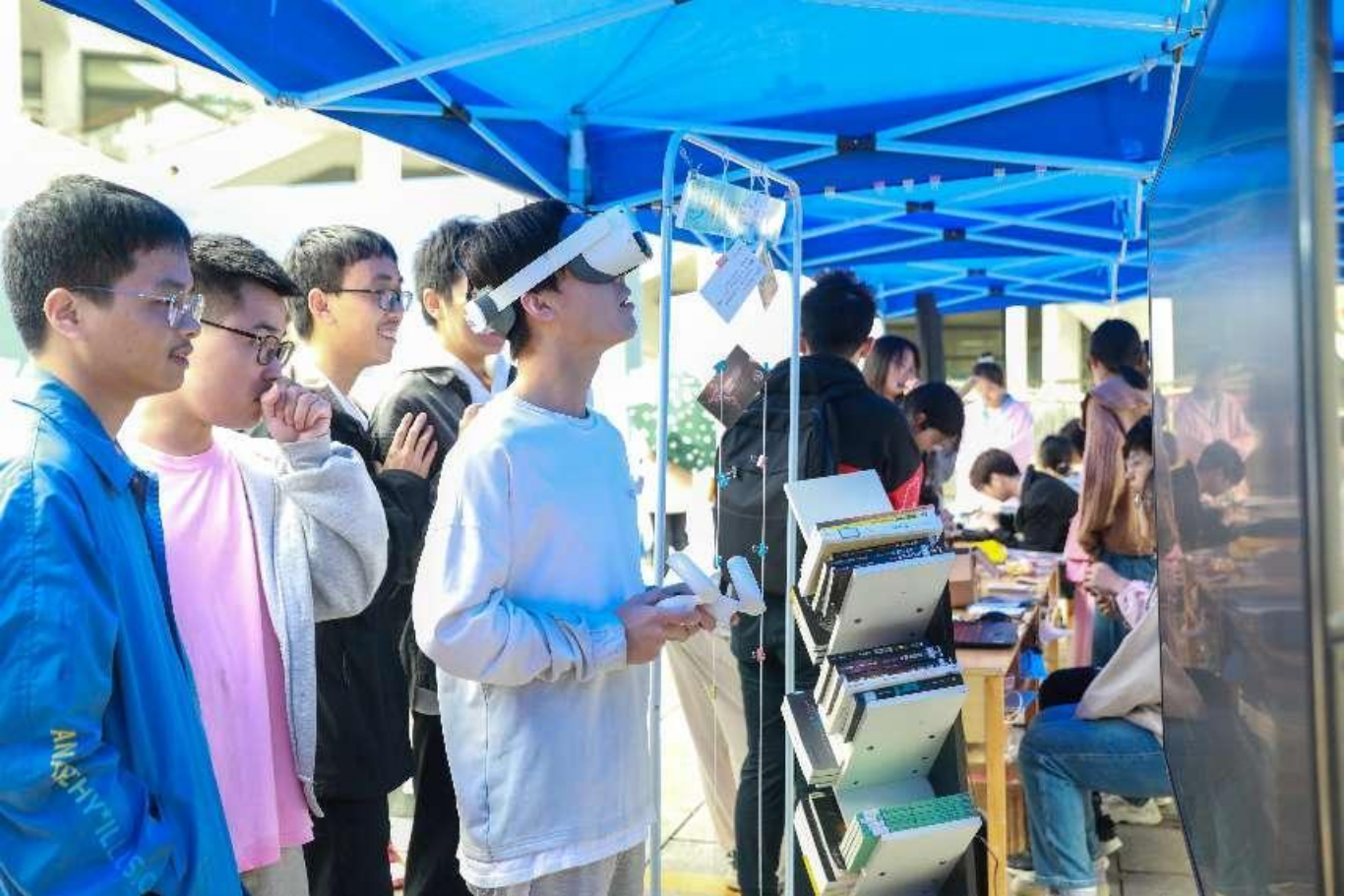 在VR阅读体验区,学生可通过穿戴式VR设备,身临其境感受经典作品里营造的恢宏世界。在云端阅读共享区和价值引领书单展示区,充分展示出数字阅读的便捷,参与者仅需手机扫码,便可浏览下载上千本中南教授和优秀学子推荐的精选书籍。通过这种虚拟现实、云端共享、移动阅读的方式,数字媒体与经典书籍碰撞,学生可随时随地接触知识,让知识在指尖缓缓流过,助力学生成长成才。在“学科学,爱科学”板块,通过讲述优秀科研工作者的事迹,现场体验人工智能技术,鼓励大家学习科研精神,探索科技之美,立志科研报国。
