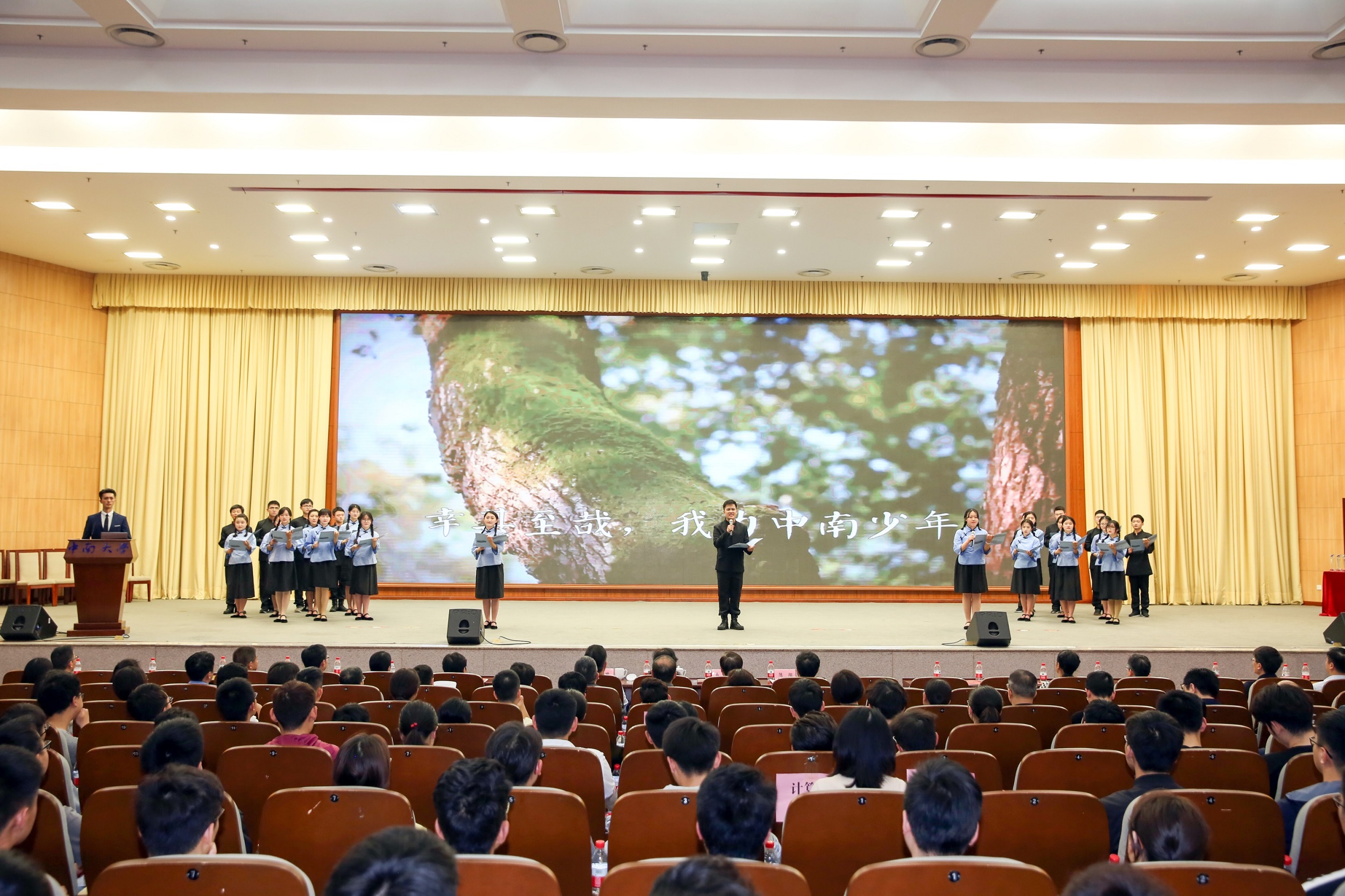 颁奖典礼在文新院学生带来的朗诵中拉开帷幕,由18级学生张馨月、秦晓敏原创的《中南少年》以词赋文体,生动展现了广大学子学在中南的群像,凝练激昂的文字,情景交融的背景,铿锵有力的朗诵,激发了在场所有学生“惜时苦学,不负韶华,我为中南少年”的共鸣,赢来阵阵掌声。
