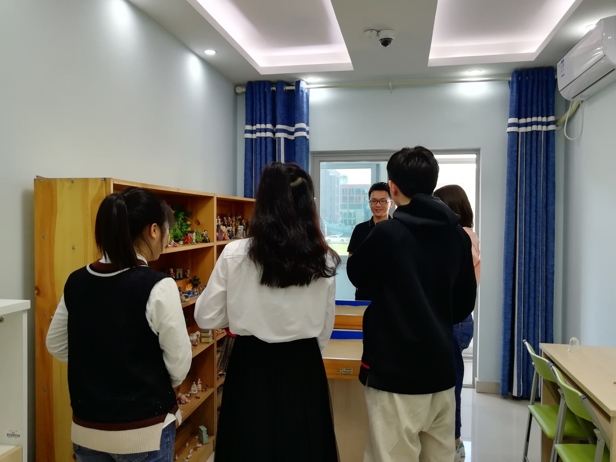 “沙游探心吧”位于233个体咨询室,这里是中心进行一对一心理咨询的场所,一沙一世界,流动的沙,驿动的心,在这里我们以团体沙盘游戏的方式互相交流,了解自己的内心世界。