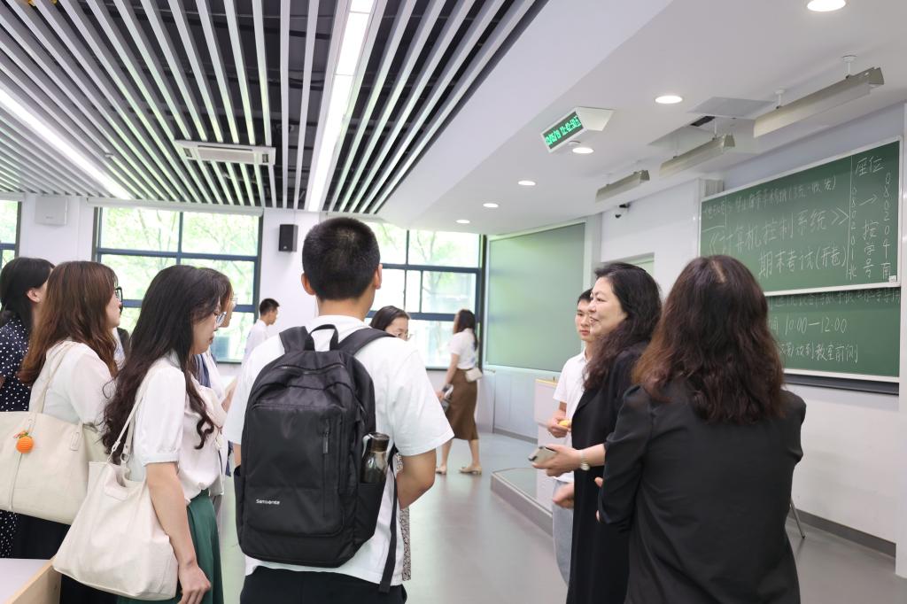 5月19日上午,调研团队来到东南大学,与东南大学教务处宛敏副处长、学籍科蒋春露科长,学习与学业指导中心相关负责老师及学生代表深度交流。宛敏副处长对我校访学团队的到来表示热烈欢迎,并从学科发展、人才培养、育人理念等方面介绍学校基本概况,希望通过此次交流达成校际互学、互鉴、互促、互进的目标,进一步优化双方辅学工作。学习与学业指导中心李敏老师从品牌活动、经验做法、建设成果等方面详细讲解了东南大学学业指导中心基本发展情况。自由交流环节,两校师生就辅学团队管理、学生激励机制、志愿服务认定、特色活动打造、宣传模式及渠道等内容进行交流讨论,气氛热烈。会后,访学团队实地参观了东南大学辅学场馆和“一站式”学生社区。