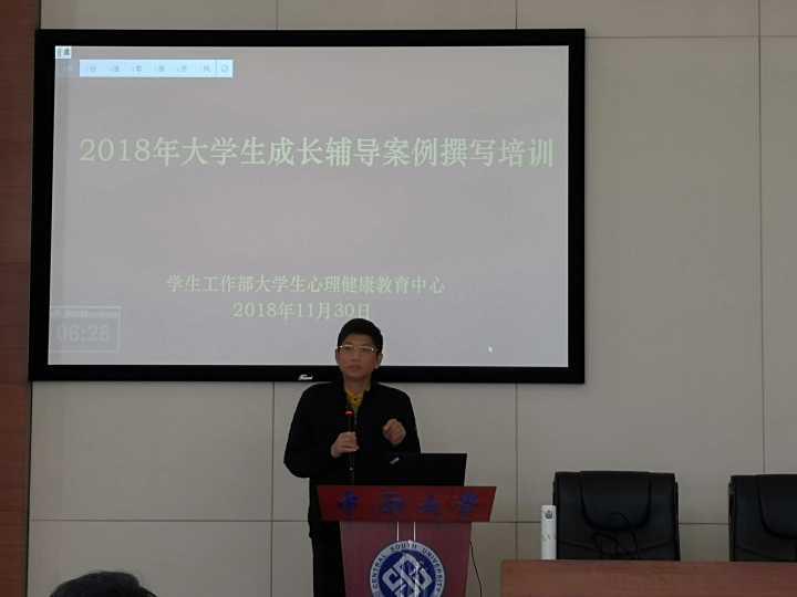 培训的第二个步骤是由机电院辅导员谭鑫老师进行成长辅导案例的讲授,谭老师作为湖南省高校成长辅导优秀案例竞赛一等奖获得者,结合湖南省优秀案例评审标准要求,充满激情的为大家讲授了大量丰富的优秀案例,提出案例书写要富有新意、对象要凸显特色,结构要按章法、叙述要精炼;案例刚开始时要埋下伏笔,过程要分阶段、重点要显专业;层次要清晰、多引用细节,过程要分阶段、重点要显专业;在保密的基础上,从多个方面进行反思、从多个角度来看效果;在案例结束时要有总结思考,要源于案例而又高于案例;谭鑫老师认为心理学来源于生活,用非常生动形象的语言鼓励在场的同仁们将自己一直在做的工作和深奥的理论结合起来,将很多晦涩难懂的心理学专业术语与一个个生活常见的谈话例子相结合,深入浅出的讲授极大鼓舞了大伙儿对于工作实践的信心,也形成了一个模板供给大家借鉴。谭老师无私的分享了自己获奖的经验,并且为大家提供了后续的助人技术类书籍。她着重指出,辅导员已经做了很多的工作,具备了大量实践经验,如果能够将实践连接理论,结合理论联系实践,有选择的展示自己的亮点和重点,那么就能写出优秀的案例。