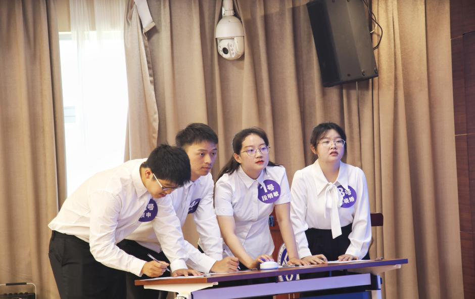 知识竞答环节由言语理解与表达、判断推理、数量关系、常识判断四个模块组成。各组选手沉着应对,通力合作,展现出了丰富的知识储备和优秀的个人素养。