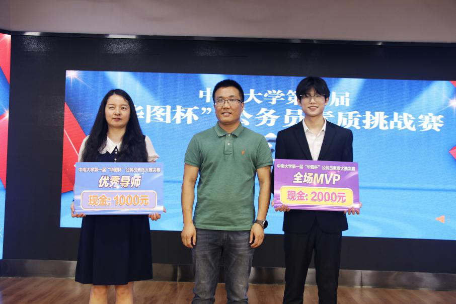 本次“华图杯”公务员素质挑战赛决赛决出冠亚季殿军各一名,分别由第三、四、一、二组获得,来自土木工程学院的第三组选手查睿获得全场MVP,冠军团队指导教师陈俊桢老师获得优秀导师奖。冠军团队代表查睿同学赛后表示:“感谢taptap官方网站就业指导中心、学生基层公共部门人才发展中心提供了一个良好的演练平台和学习机会。此次比赛让我进一步加深了对公务员考试内容与流程的了解,也更加坚定了我投身基层的决心。”