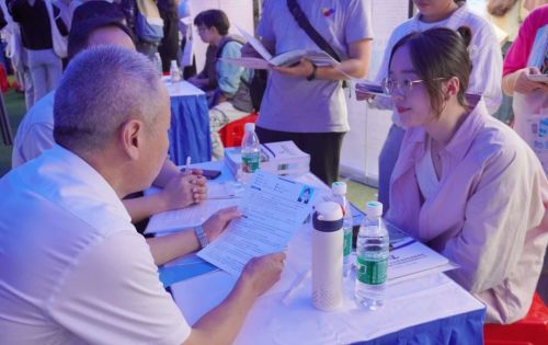 会场内人头攒动,不少单位展位前排起长龙。毕业生带着简历积极地与意向用人单位的招聘负责人沟通交流,在一次次职能匹配的尝试中积累经验、完善自己。