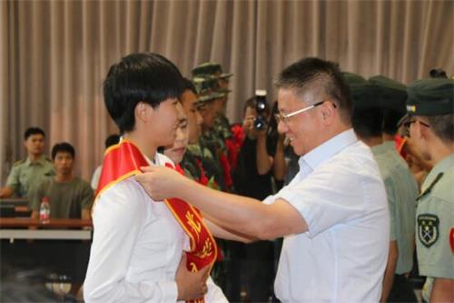 会议在庄严的国歌声中拉开序幕。学生工作部(武装部)部长余文武宣读了43名入伍学生名单,退役学生代表和领导先后为应征入伍学生佩带红花和绶带。