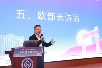 最后,学工部欧旭理部长做了总结讲话。他对获奖单位和个人表示了祝贺,肯定了各级学院通过 “学在中南”励学、勤学、优学、辅学四大体系,推进学风建设方面所做的工作和努力。欧部长以学风建设很重要、多不易、有成效、需持续总结了学风建设情况并提出了期待与要求。他强调学风建设关乎学生的学业成长、顺利毕业,关乎国家的人才培养,更关乎落实立德树人根本任务。学风建设是一项长期的系统工程,需要我们全体学生工作者持续推进,加强与相关部门联动,发挥广大学生干部的作用,使学风建设得以系统化、持续化,打造优质精良的学风品牌。