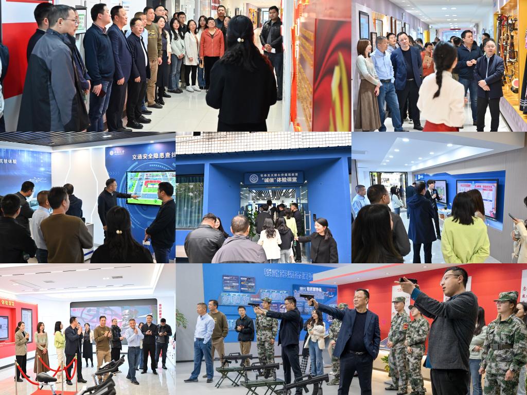 会议结束后,支部开展主题党日活动。为丰富学生成长成才资源供给,进一步发挥思政实践资源育人实效,全体成员前往各思政实体资源点进行集体参观交流。支部成员们先后参观了“党的二十大精神”学习体验课堂、铸牢中华民族共同体意识体验课堂、社会主义核心价值观教育“爱国”“敬业”“诚信”体验课堂、安全教育体验馆、“迷彩中南”国防教育体验课堂,并就思政实践资源体系的长远规划及建设升级进行交流研讨。