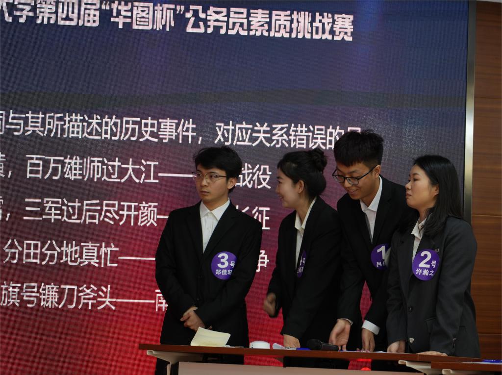 知识竞答环节由言语理解与表达、判断推理、数量关系、常识判断四个模块组成,各组选手沉着应对、通力合作,你追我赶、力争上游,展现出了丰富的知识储备和优秀的团队协作能力。