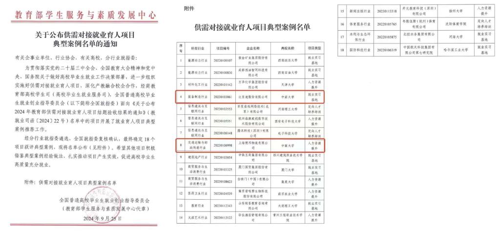 近日,教育部公布供需对接就业育人项目典型案例名单,全国共有18个项目入选,我校与比亚迪股份有限公司合作开展的就业实习基地项目,与上海德邦物流有限公司合作开展的人力资源提升项目荣获该项殊荣,成为唯一获评2项典型案例的高校。