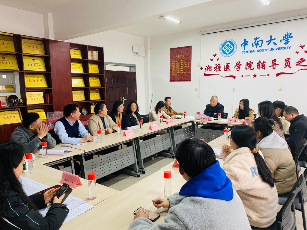 为更好落实立德树人根本任务,推动辅导员践行“一线规则”相关要求,筑牢思想防线和安全防线,12月30日下午,学生工作部副部长、湘雅医学院党委副书记吴世明在湘雅新校区孝骞楼705会议室对医学各二级学院开展“践行一线规则,筑牢育人根本”第二轮专项督查。基础医学院、湘雅公共卫生学院、湘雅护理学院、湘雅口腔医学院、湘雅药学院、生命科学学院党委副书记和各年级辅导员参加调研座谈。会议由湘雅医学院学工办主任王丹主持。