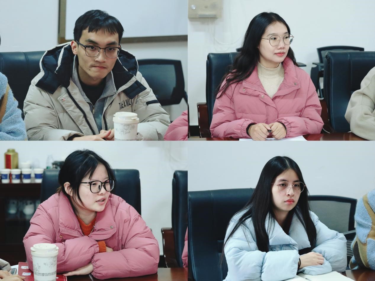 调研组一行就辅导员熟知学生情况进行随机询问,从每位辅导员负责的所有学生中抽查5名学生,由所负责的辅导员一一汇报学生基本情况。胡雨琪、邓志伟、谭澳利、肖茜斤、文璋、白丹妮、赵元超依次回答调研组询问,详细汇报了学生的基本信息、性格特征、家庭情况、学业情况、在校表现等方面的情况。随后,大家就学生工作中遇到的问题和困难进行了讨论交流。
