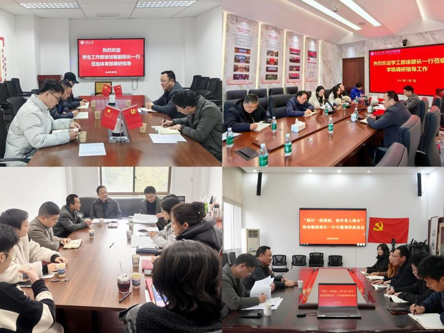 为深入实施“时代新人铸魂工程”,贯彻辅导员践行“一线规则”相关要求,落实学校有关工作部署,2025年1月7日,学工部副部长徐旭敏一行先后到体育教研部、冶金与环境学院、粉末冶金研究院和法学院开展“践行一线规则,筑牢育人根本”第二轮专项督查。各二级学院学生工作负责人及全体辅导员参加调研会。