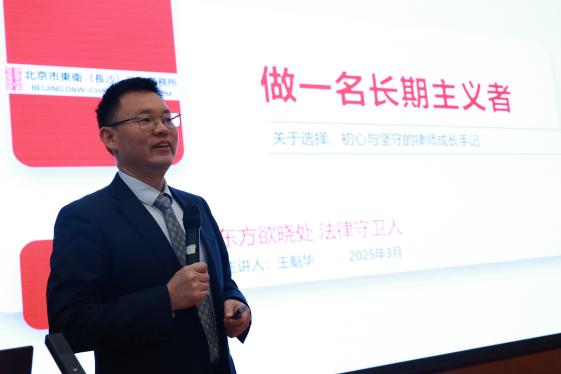 王魁华律师以优秀校友的身份,分享了从taptap官方网站法律硕士成长为律所主任的奋斗历程。他通过详实的数据和生动的案例,剖析了当前法律行业的竞争态势和发展机遇,提出了"专业深耕+科技赋能"的职业发展建议,勉励学弟学妹们要"立长志、重积累、守初心"。