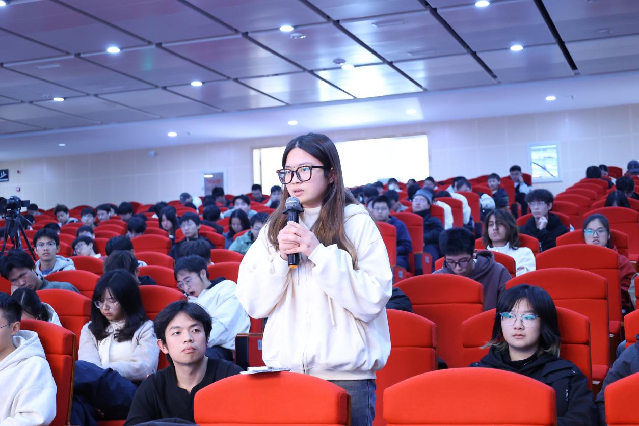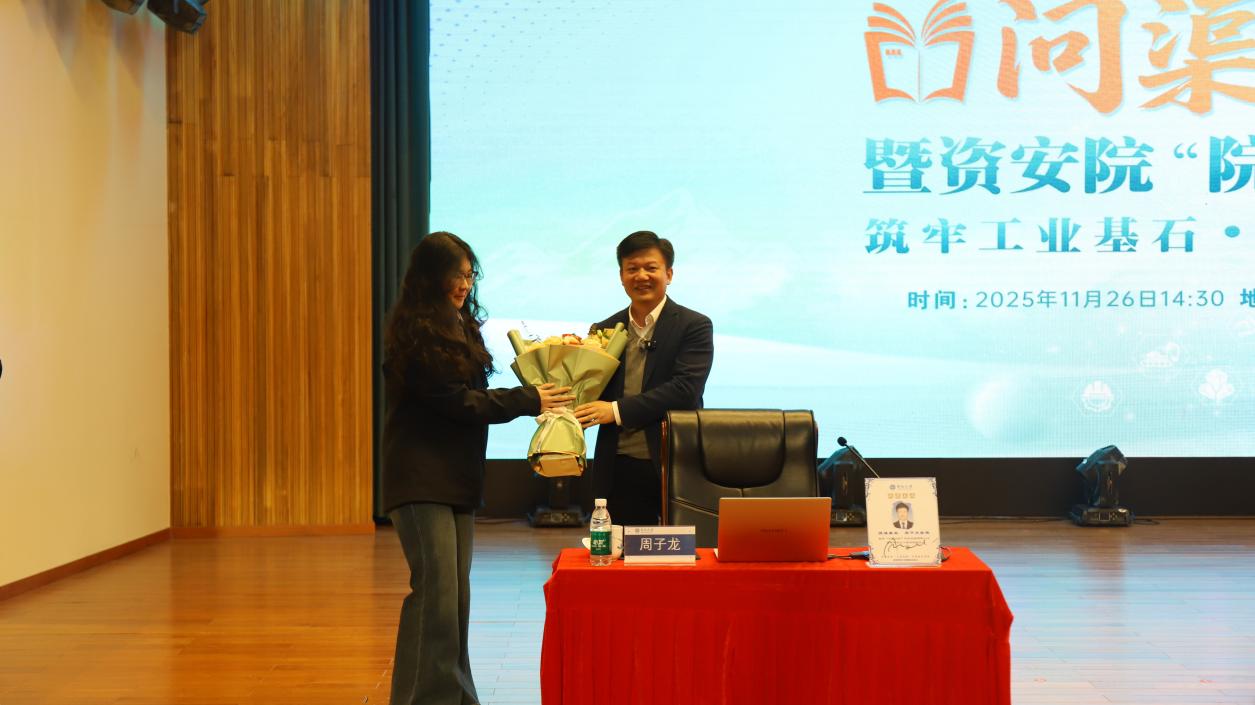 互动环节中,同学们围绕行业前沿、职业发展等问题踊跃提问。对于同学们的疑惑,周子龙教授一一解答,并为同学们送上寄语:“请不要做时代的旁观者,去做这些难题的‘解题人’,希望你们能用自己的青春为中国矿业写下这个时代最铿锵的答卷”。