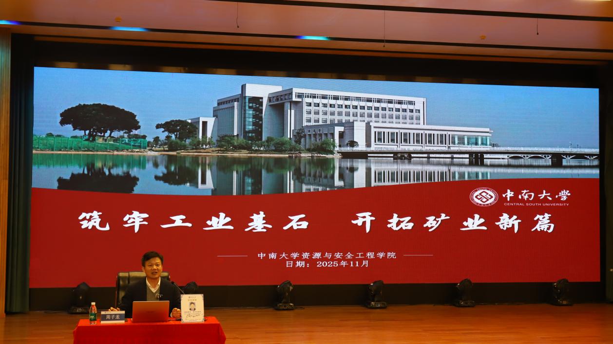 周子龙教授从矿业发展史出发,阐释了矿产资源在人类文明进程中的重要地位,生动说明了矿业作为“工业之母”对现代经济体系的基础支撑作用。围绕矿业的战略意义,他着重强调了矿产资源是国家经济命脉与国防安全的基石,并进一步分析了稀土、锂、钴等关键矿产在国际竞争中的战略地位。同时,周子龙教授深入剖析了矿业转型升级的必然路径,讲述现代矿业正在走向一条更安全、更绿色、更智能、更可持续发展的道路。他还与大家一同重温了老一辈矿业开拓者的贡献,并分享了当代优秀校友的实践成果,鼓励同学们要勇于担当新使命,展现新作为。