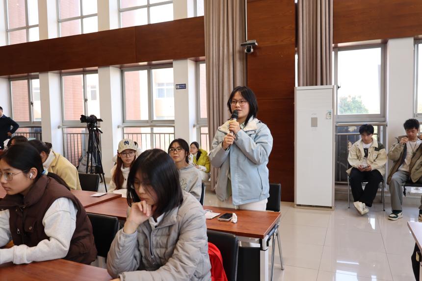 在互动交流环节,现场同学围绕科学护肤理念、药妆产品研发、学科交叉融合以及未来职业发展等话题踊跃提问。周文虎教授结合自身科研成长经历和育人实践,鼓励青年学子既要夯实专业根基,又要主动将个人发展融入健康中国建设的时代进程,在实践中检验所学、在服务中锤炼本领,实现知识积累与价值塑造的统一。现场交流深入而富有启发性,思想性与专业性相得益彰。