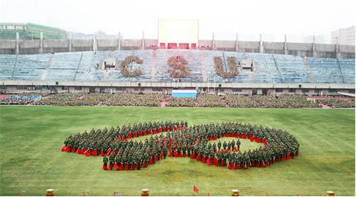 伴随着雄壮激昂的国歌声,鲜艳的五星红旗冉冉升起,大会正式拉开帷幕。刚劲有力的擒敌拳、英姿飒爽的匕首操、气盖山河的格斗基本功、钢筋铁骨的警卫拳和刺杀操、气势磅礴的队列操表演,充分展示同学们在骄阳烈日下刻苦训练的丰硕成果,赢得了在场嘉宾和师生的阵阵掌声与喝彩。军乐团的同学们摆出“18”的字样,与坐在观众席上的同学们摆出的“csu”字样相互呼应,表达了对中南的祝福。在队列操中,同学们摆出“灵魂”、“本领”、“血性”、“品格”等字样,彰显出青年学子的担当精神。接着同学们还摆出“一带一路”、“四十”、“未来”等字样以及中华人民共和国地图等图案,表达了对改革开放四十周年的深切礼赞和对祖国更加繁荣富强的美好祝愿。在分列式上,全体参训新生以青春昂扬的姿态、铿锵有力的步伐经过主席台,展现出中南学子奋勇向前、积极向上的精神风貌。