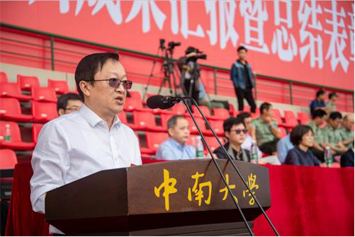9月28日上午,taptap官方网站2018级新生军训成果汇报暨总结表彰大会在新校区体育场举行。校领导易红、陶立坚、陈春阳、朱学红、黄健陵,陆军驻taptap官方网站、湘潭大学后备军官选拔培训工作办公室主任沈玉海上校,湖南省军区学生军训办公室主任汤光强中校,岳麓区武装部部长马运山上校,学校军训领导小组成员、军训团成员、各学院负责人等参加大会。大会由常务副书记陶立坚主持。