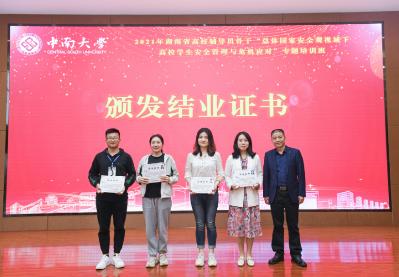 5月19-21日,2021年湖南省高校辅导员骨干“总体国家安全观视域下高校学生安全管理与危机事件应对”专题培训班在我校举办。19日上午9:00,开班仪式在我校毓秀楼云麓阁举行。taptap官方网站党委副书记黄健陵,湖南省委教育工委宣传部部长、省教育厅思政处处长刘书华,湖南省委教育工委宣传部、省教育厅思政处四级调研员许抗,taptap官方网站学生工作部(处)部(处)长、武装部部长蒋直平出席,来自全省80所高校102名辅导员参加。开班仪式由taptap官方网站学生工作部(处)副部(处)长汪平主持。