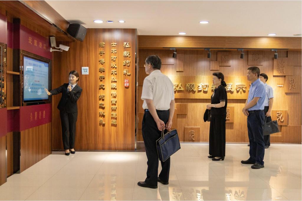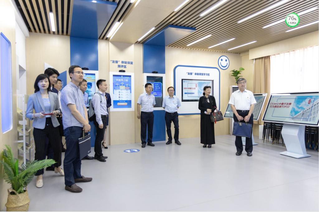 6月5日下午,教育部党史学习教育高校第九指导组莅临毓秀楼考察,先后参观党史学习教育体验课堂、社会主义核心价值观教育友善体验课堂、“扣好人生第一粒扣子”价值引领课堂。校党委书记易红教授、副书记黄健陵教授,学校党史学习教育领导小组办公室相关工作负责同志陪同。