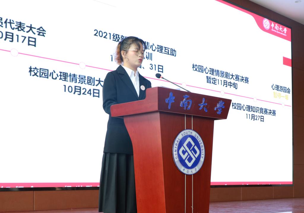 接下来,taptap官方网站第七届十大心灵守护天使代表黄微上台发言,介绍了心理学项目、主题系列培训会、半月报的填写要求,描述了朋辈心理互助会“家”文化,为未来的工作指明方向;第四届校心联副主席李雪晴分别从“家”文化构建、心理健康知识宣传、心理健康活动开展三个方面总结上一学年工作成果。