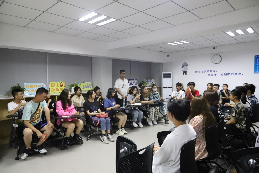 座谈会开始后,于悦凡老师首先带领同学们进行破冰游戏。新生间幽默风趣的自我介绍与各具特色的个人故事让此次座谈会充满了欢声笑语,尤其是当同学们谈及自己名字的由来时更是引起了大家的共鸣。游戏环节结束后,主持人邀请了六位港澳台新生分享入学以来在学校的感受,来自不同学院的新生畅所欲言,分享了自己入学后的所见所闻与深刻感悟。同学们纷纷表示通过军训,港澳台新生们更快地同内地新生们熟络起来了,也增强了体质,养成了良好的生活习惯,大家一致认为军训期间最大的收获便是认识到团结一致的重要性。来自不同学院的新生们也不约而同地表达了对军训中自律生活的赞美,并展现了军训中不怕苦、不怕累、争先向上的精神,最后共同表示了对以后大学生活的美好期盼与对其他同学的美好祝福。“按时到位,风雨无阻,我能照顾班级同学,我为班级同学服务,感到十分充实。”新当选为军训负责人,来自商学院的台湾新生罗伟祐同学讲到。