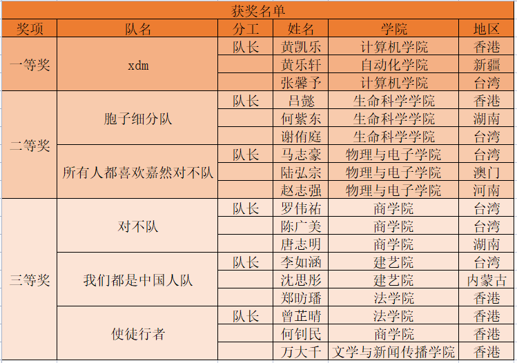 经过激烈的角逐,根据比赛得分情况,6支获奖队伍脱颖而出。“xdm队”斩获一等奖;“所有人都喜欢嘉然对不队”和“胞子细分队”荣获二等奖;获得三等奖的队伍有“我们都是中国人队”“对不队”以及“使徒行者队”。